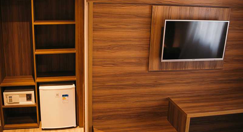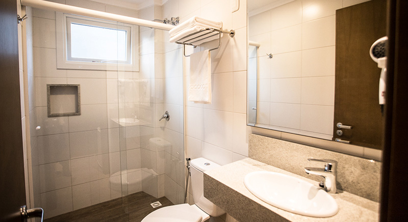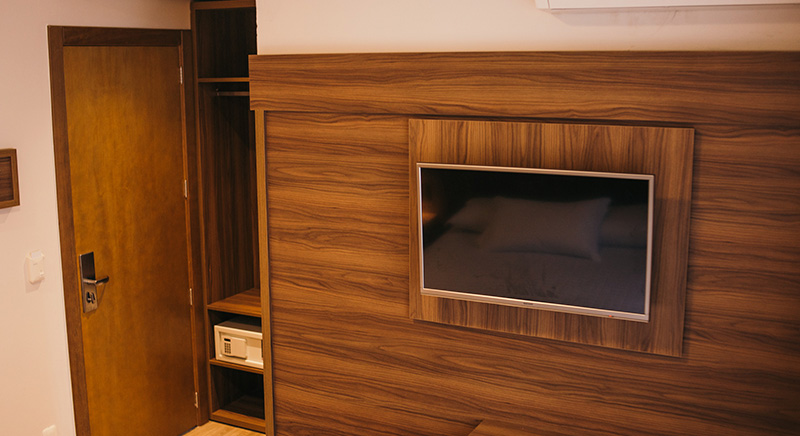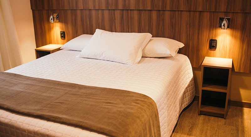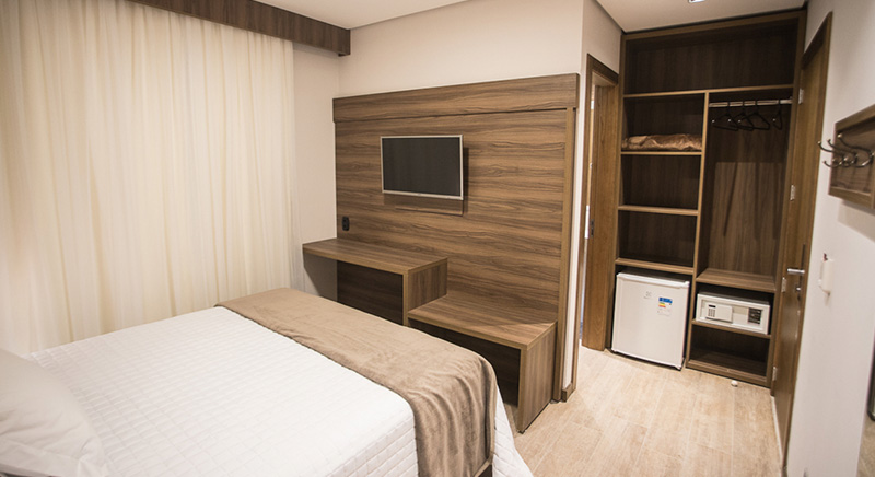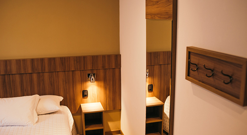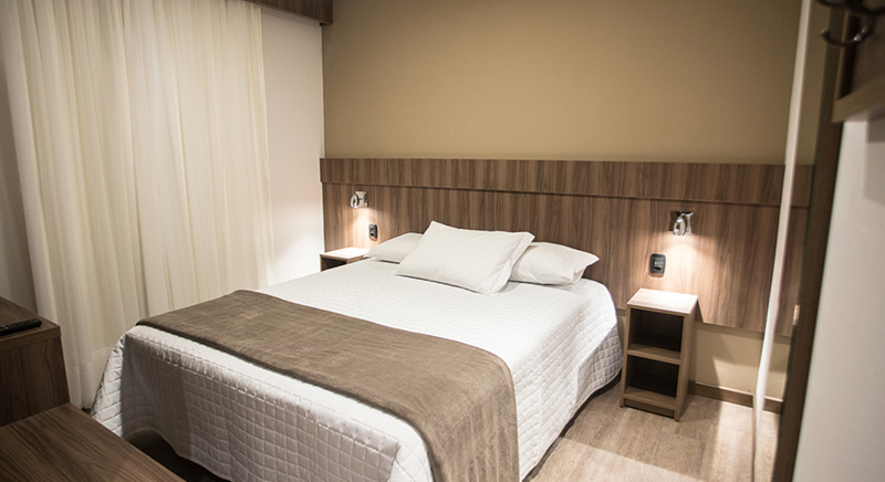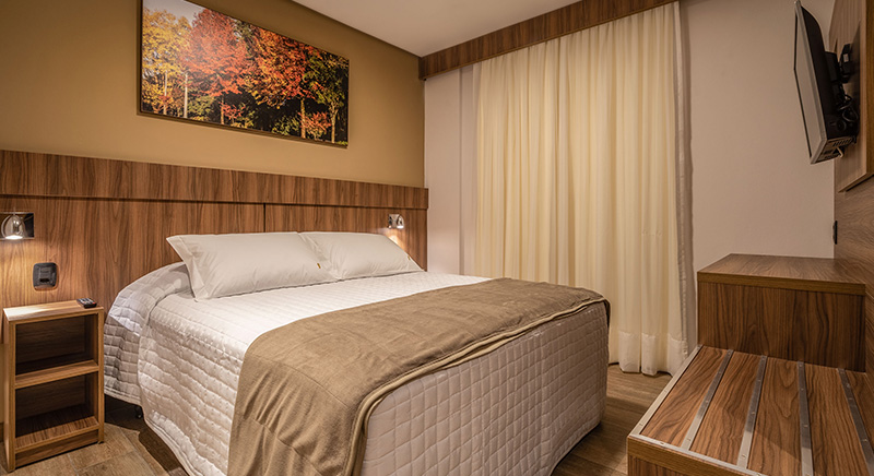 O quarto Duplo Luxo tem a possibilidade de acomodar duas pessoas, sendo casal ou twin, de uma maneira aconchegante.